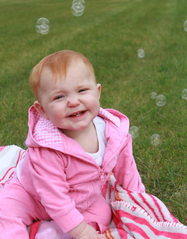 I can't believe how quickly this first year has gone. It amazes me how I seem to love you more and more each day, from your red hair to your cheesy grin to your sassy attitude that doesn't take no for an answer. I love everything about you. One year ago, you came into our lives and you've irrevocably changed them forever, for the better by far. I can't imagine my life without you anymore. I live to love you, to chase you down the hallway and make you giggle, to whisper 'I love you' in your little ear, and to watch you grow and learn new things each day. You walk now, and you talk in your own little language, babbling and giggling constantly - my favorite sounds these days!